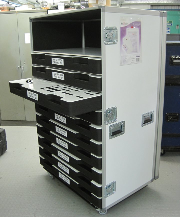 Flight cases can be custom fitted with shelves, partitions, support rails, storage compartments, false floors, foam routed inserts, rack frames and special support brackets to name just a few examples of our Internal Fitouts.