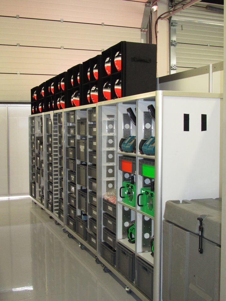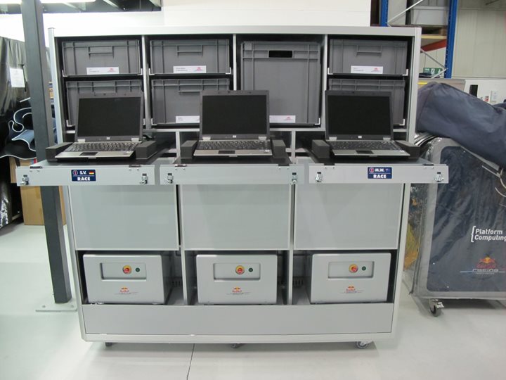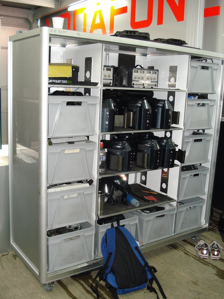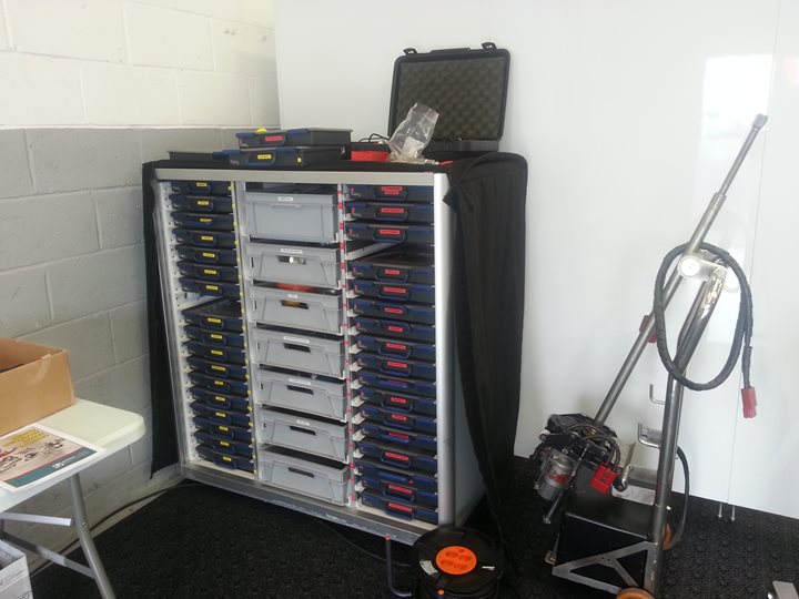 Framelight Storage units are easily transferred from your airfreight or truck transport to use inside your motorsport garage or factory environment so handling time is greatly reduced. Just remove a soft padded cover and you are ready to go.