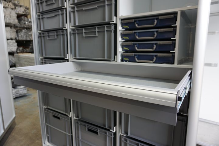 Turn your Framelight Storage unit into a dual-purpose freight unit and mechanics or engineering workstation for the garage. Add specific customised features of a working garage such as a worksurface area with integrated power and lighting or pneumatics. Alternatively, you might install your IT rack equipment, specialist analysis equipment or add grey storage bins and drawers.