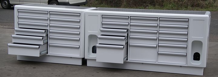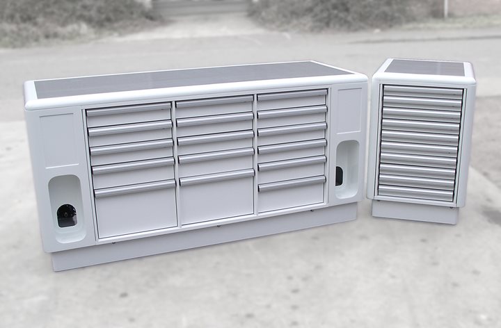 Quentor Garage Tool Cabinets are a stylish, practical and rugged solution for storing and transporting your engineering tools and equipment. Made to your specification, using lightweight honeycomb aluminium panels, Quentor Garage Tool Cabinets offer super strength and weight-saving advantages.