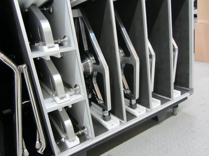 Each Set Up case will be internally fitted to suit the exacting profiles of your own set up equipment. Customised nylon grooves, foam lined compartments and retaining brackets are selectively used for logical storage and give added security and protection.