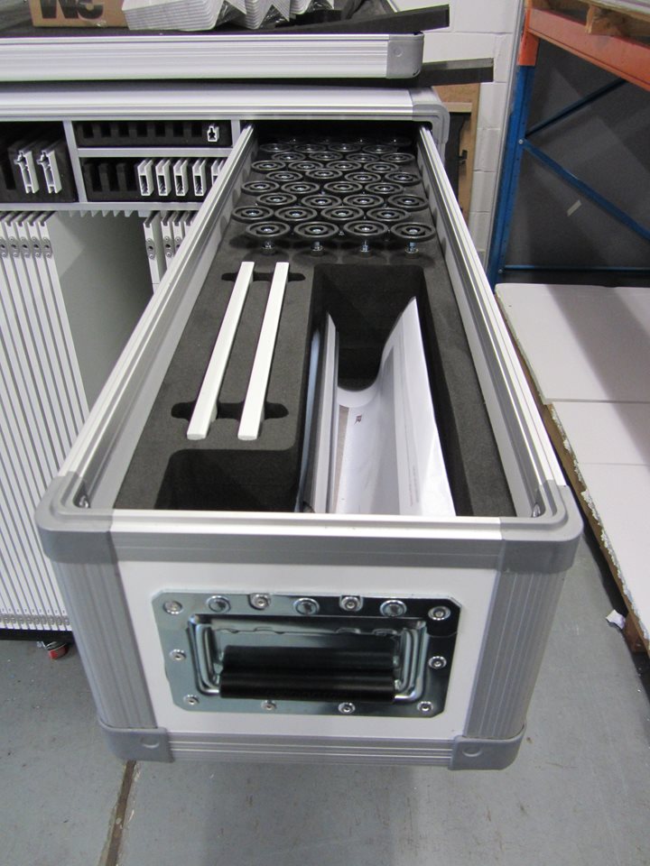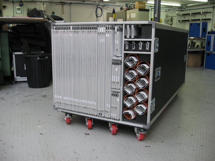 Expertly designed for efficient space saving, with every loading slot clearly labelled and identified in a logical way, these flight cases will both simplify and accelerate the build and dismantling processes.