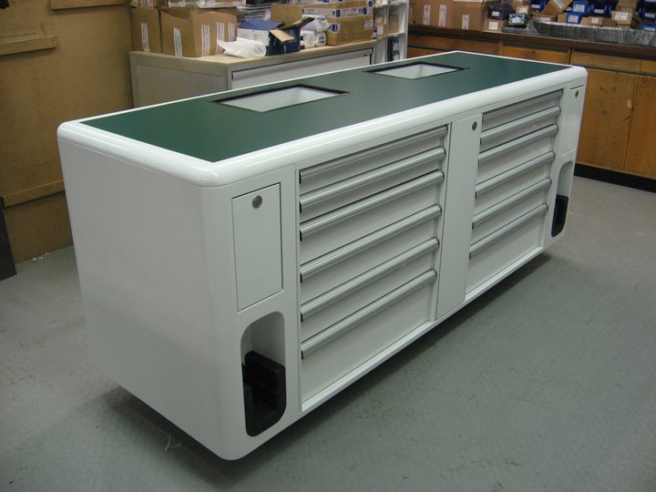 Made to your specification, using lightweight honeycomb aluminium panels, Quentor Garage Tool Cabinets offer super strength and weight-saving advantages.