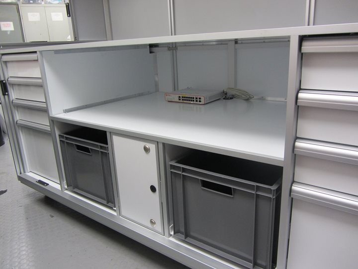 Turn your Framelight Storage unit into a dual-purpose freight unit and mechanics or engineering workstation for the garage. Add specific customised features of a working garage such as a worksurface area with integrated power and lighting or pneumatics. Alternatively, you might install your IT rack equipment, specialist analysis equipment or add grey storage bins and drawers.