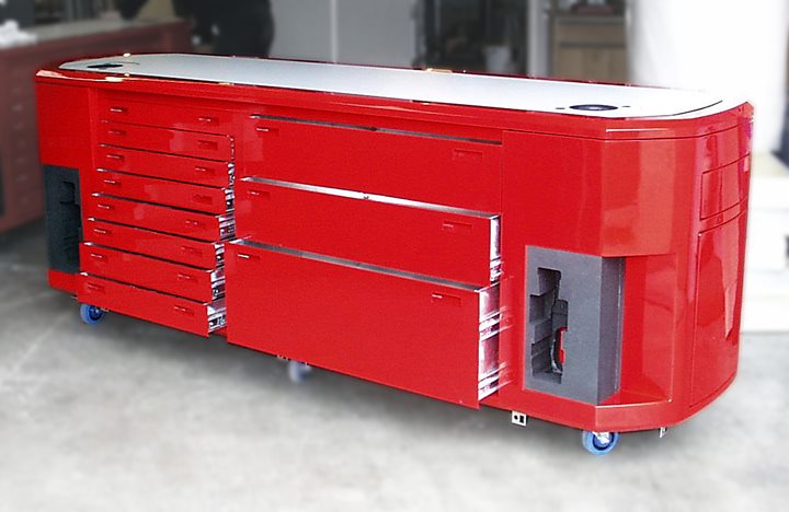 These highly desirable Garage Tool Cabinets present a bold statement of function and quality. Quentor has successfully supplied variations of these Garage Tool Cabinets to many elite motorsport Teams around the globe for over 30 years.