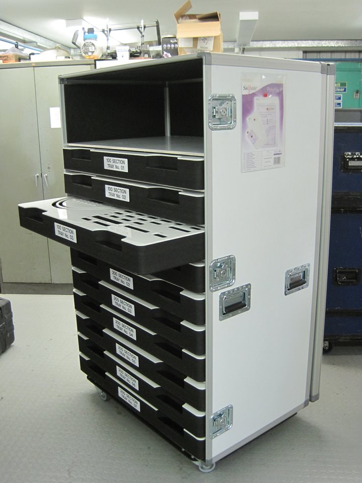 Taking it to another level, make your Spares Storage unit into a dual-purpose engineering workstation. For example, add a worksurface area with integrated power and lighting, add wheel guns, give vibration limiting support to delicate equipment and install a set of custom fabricated drawers.