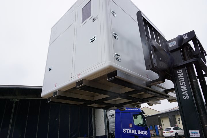 LAND: The base structure enables the shack to be easily and safely forklifted from multiple directions onto a truck bed.