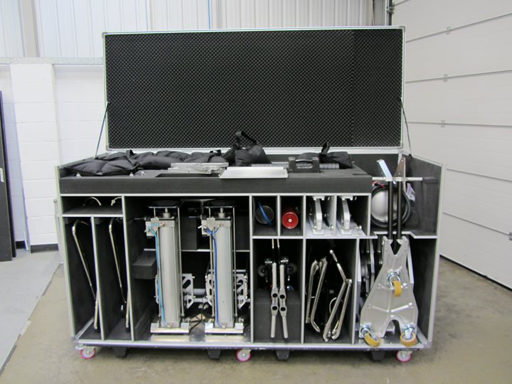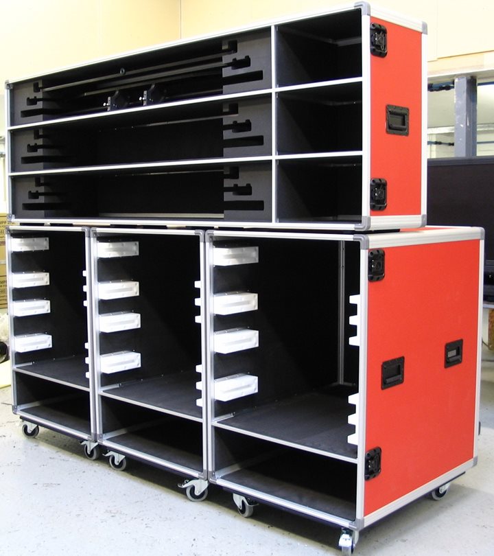 Each Set Up case will be internally fitted to suit the exacting profiles of your own set up equipment. Customised nylon grooves, foam lined compartments and retaining brackets are selectively used for logical storage and give added security and protection.
