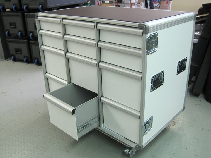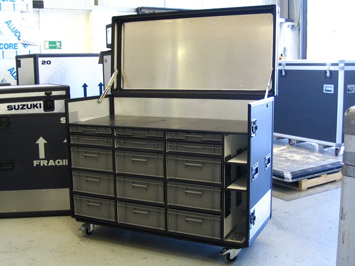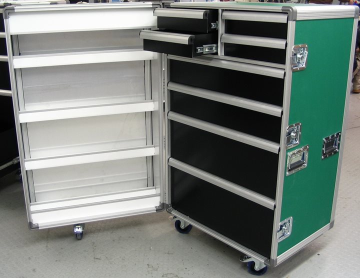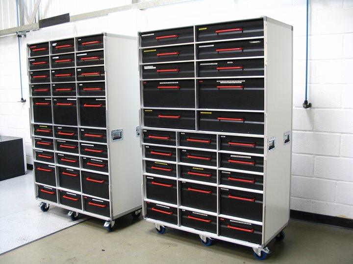 Drawers, cupboards, storage bins and shelves are combined to provide a unique Spares Storage case solution to suit your own specific requirements.