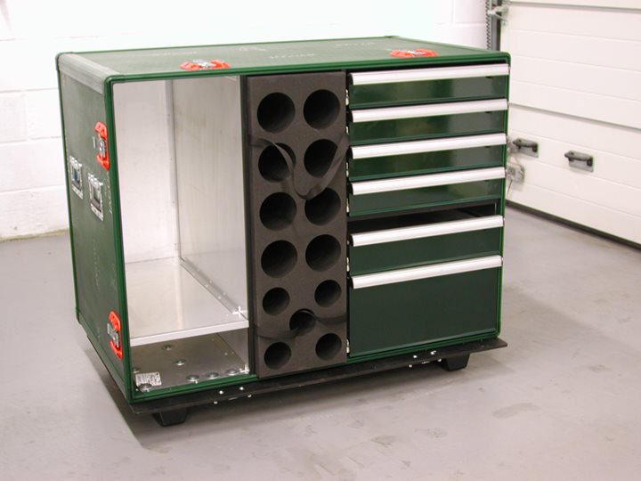 Further options could include wheel gun mounting, electrical connectors and worktop combinations to enhance the functionality of your spares storage flight case. Foam routed inserts can also be crafted to hold tools and equipment to give protection in transit and enable you to see at a glance if anything is missing.