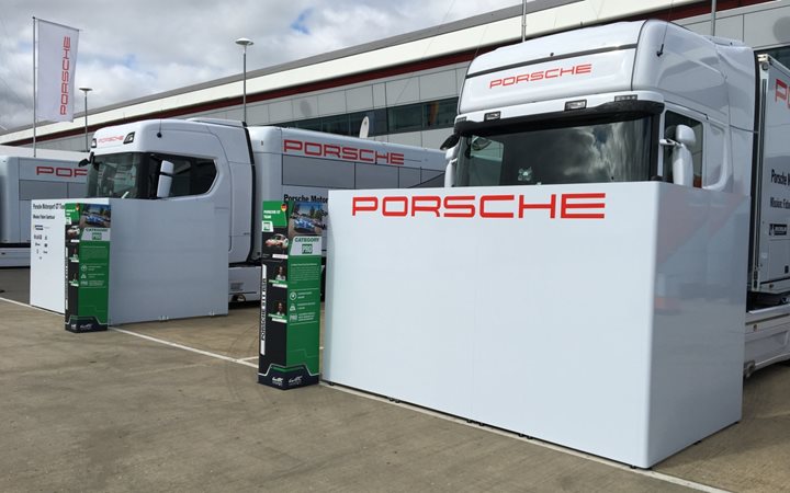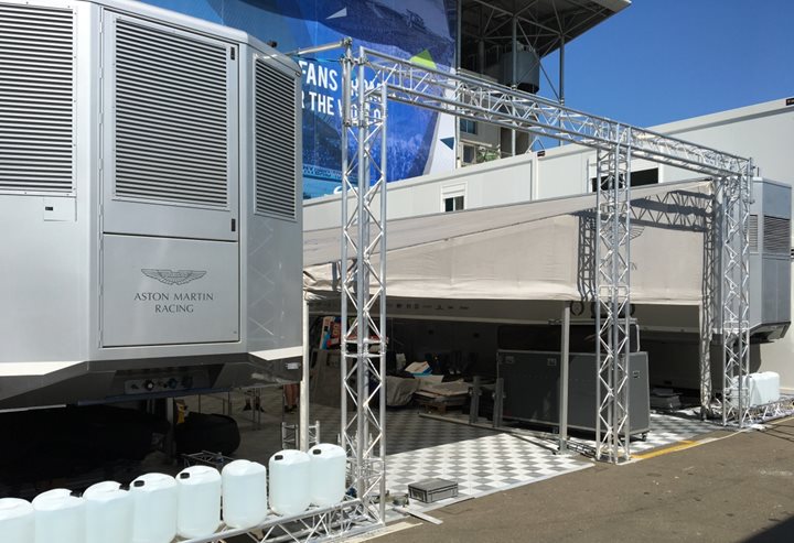 The seamless Truck Fascia Panel System will wrap around your paddock truck area to create a secure and private working enclosure. Supported by a gantry structure, the Quentor Truck Fascia will present the perfect branding space to promote your team and Sponsors’ names in large format allowing you to welcome your guests in style.