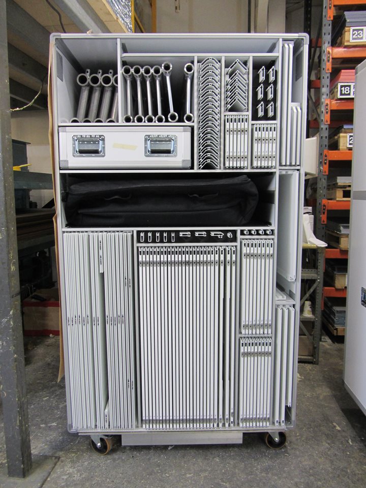 Expertly designed for efficient space saving, with every loading slot clearly labelled and identified in a logical way, these flight cases will both simplify and accelerate the build and dismantling processes.