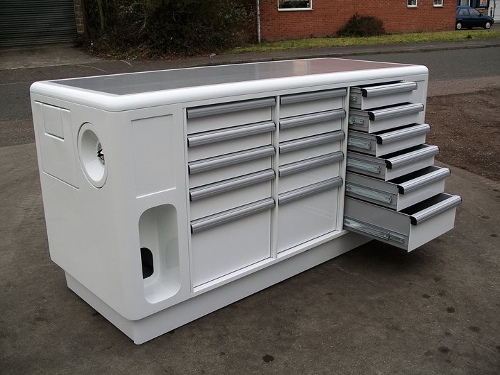 Made to your specification, using lightweight honeycomb aluminium panels, Quentor Garage Tool Cabinets offer super strength and weight-saving advantages.
